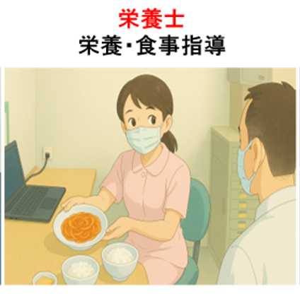 - 1~3か月に1度、全6回を目安に受診していただき、医師・看護師・栄養士が診察します。