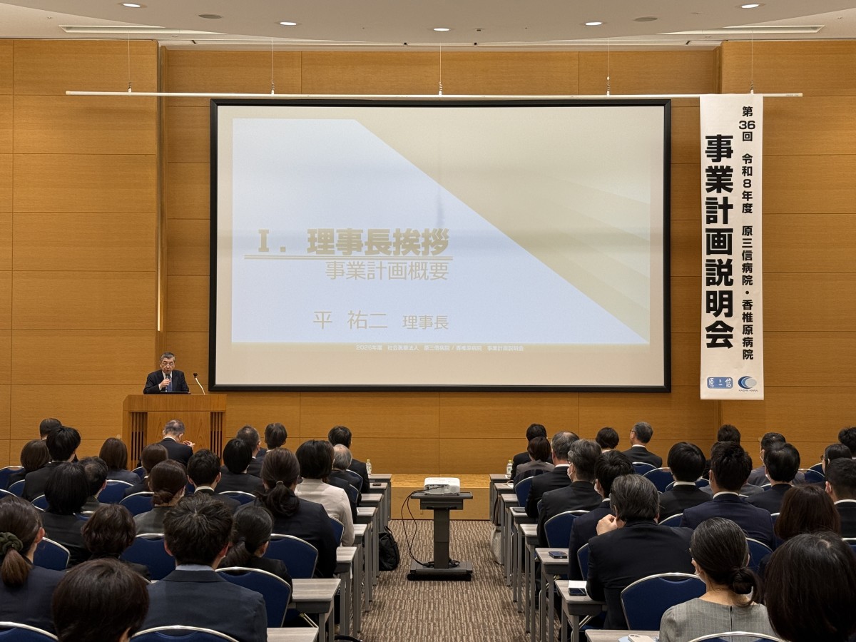 ホーム ピックアップ 取り組み 2026年度社会医療法人原三信病院事業計画説明/新入職員歓迎会を行いました ピックアップ 2026年度社会医療法人原三信病院事業計画説明/新入職員歓迎会を行いました 2026年4月22日 取り組み 2026年4月21日に福岡国際会議場/福岡サンパレスにおいて原三信病院・香椎原病院事業計画説明会および新入職員歓迎会が行われました。 事業計画説明会では多くの管理職の方が参加し、2026年度の社会医療法人原三信病院・香椎原病院の事業計画が共有され、 新入職員歓迎会では総数73名の新入職員を歓迎し、和やかな雰囲気の中で親睦を深める良い機会となりました。 前の記事 一覧へ戻る