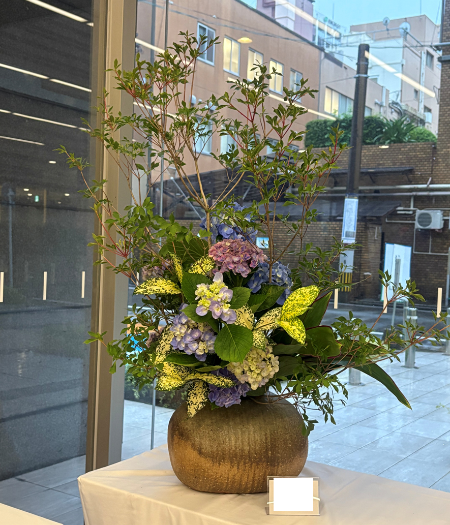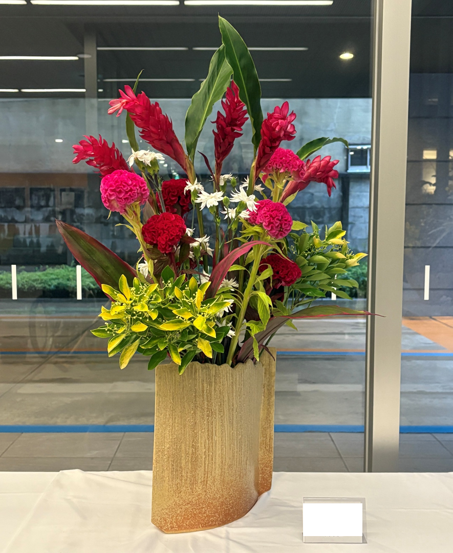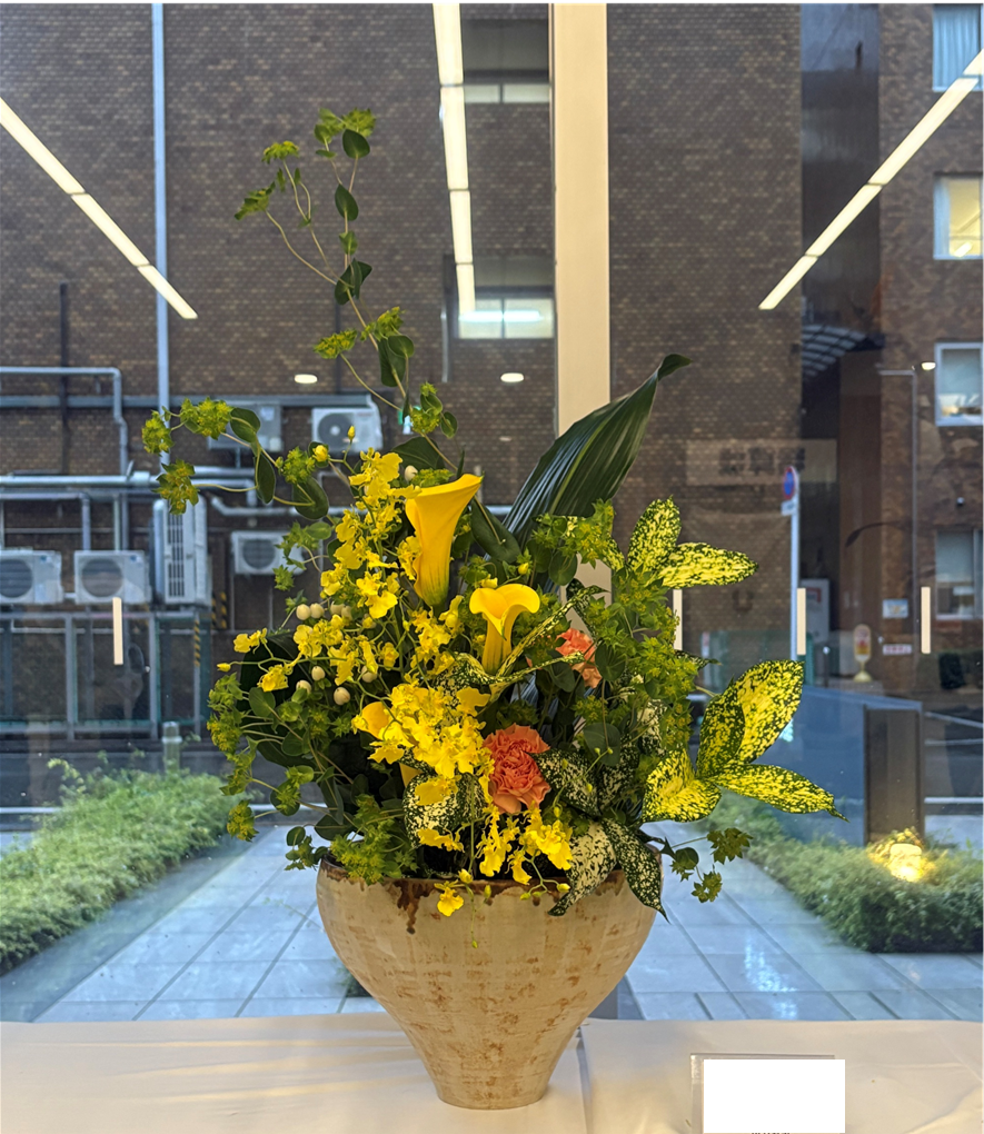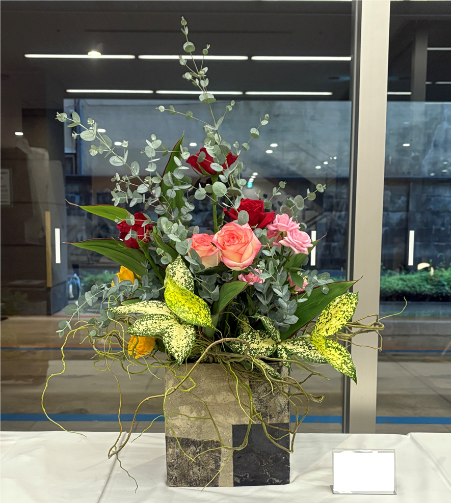 院内に飾ってある花は華道部が活けています。三信祭では作品を展示します。