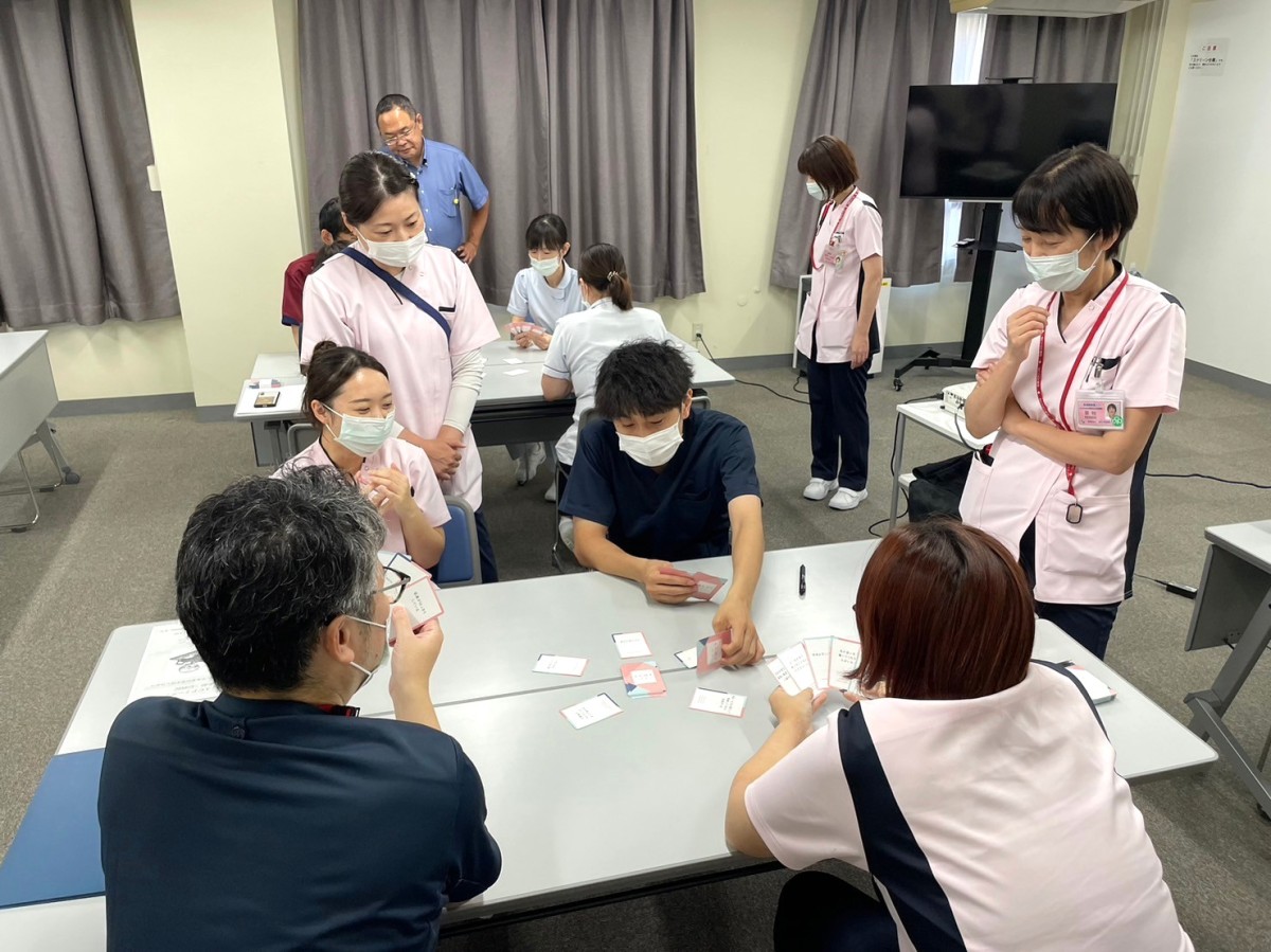 今回の研修では、講義と「もしバナゲーム」が行われました。もしバナゲームとは、もしも1年以内の命と言われた場合に何を大切にしたいかを考えたり話し合ったりするゲームです。参加した職員は患者さんの人生観や価値観に寄り添うことや、自分の人生の最後どう在りたいかを認識するきっかけになりました。