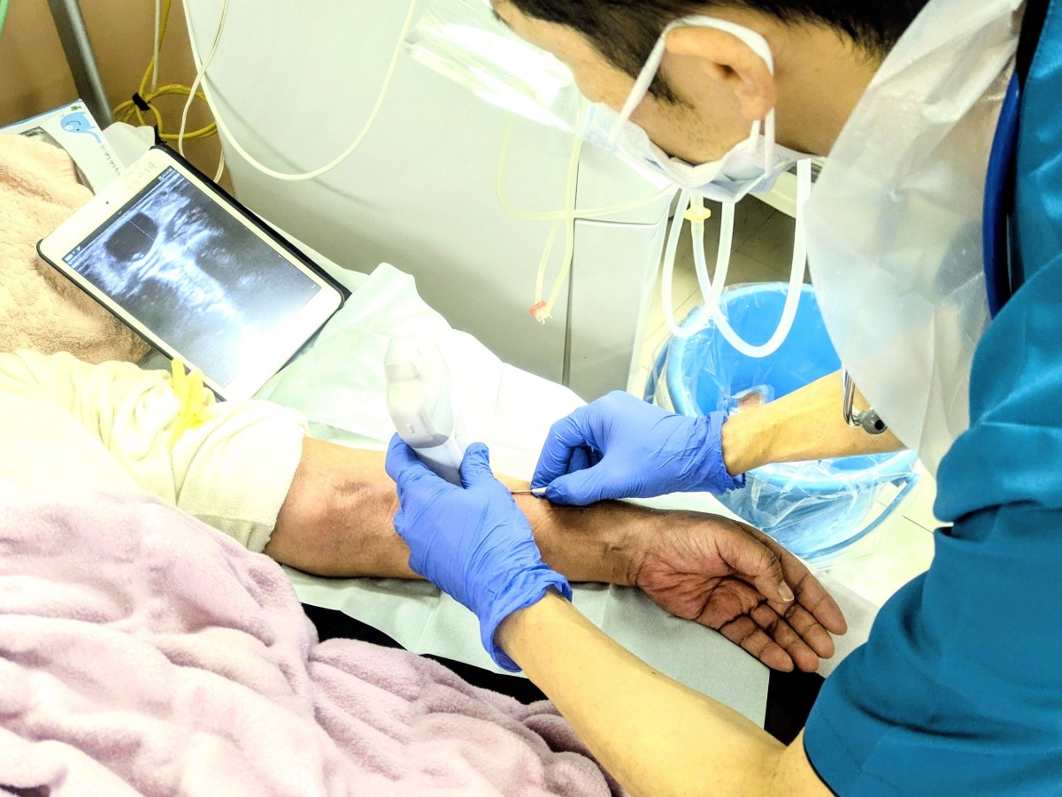 「穿刺の不安」を減らすべく、エコーで確実な穿刺を。